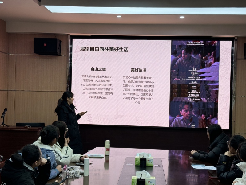 郑齐园同学分享的《我与地坛》深刻地反思和阐述了“生命”的艰辛与价值,让我们明白要珍惜生命,勇敢面对困境;邵崇璟同学分享的《人生海海》中“上校”用波折且勇敢的一生告诉了我们“人生海海,敢死不叫勇气,或者才需要勇气”;刘奕珊同学分享的《杀死一只知更鸟》时刻提醒着我们永远不要丢失勇敢、善良、平等和正义这些人类最珍贵的品质;郭小冉同学分享的《瓦尔登湖》恰如同一泓清泉,淌过岁月的长河,润泽着我们干涸的心田,引领我们在自然的怀抱中,找寻生命的真谛;任明格同学分享的《肖申克的救赎》让我们深刻地体会到希望、自由与坚持的重要性,也时刻激励着我们在逆境中坚持希望。