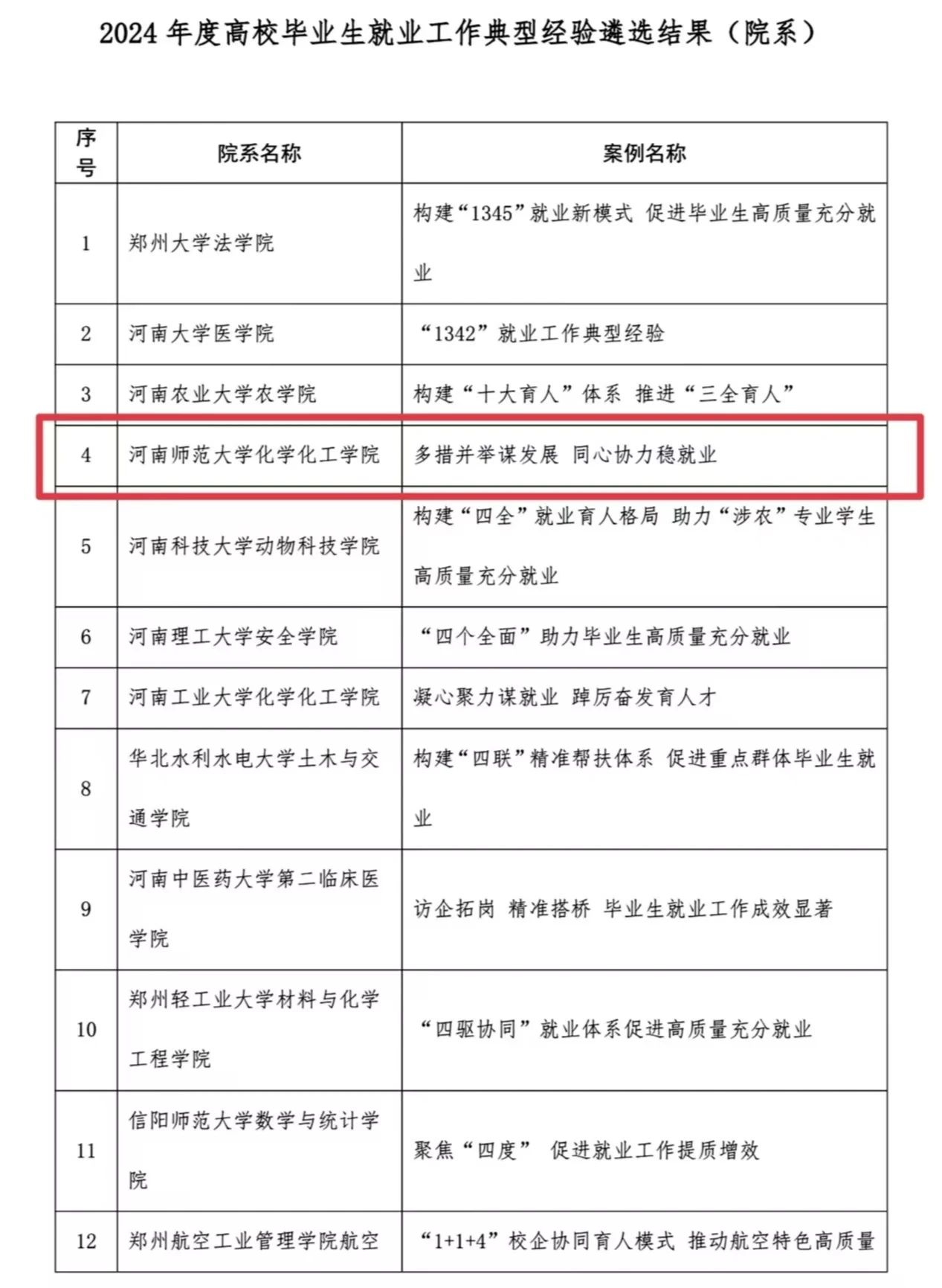 近日,河南省教育厅公示了“2024年度高校毕业生就业工作典型案例遴选结果"名单,经逐级推荐评选,学院申报的“多措并举谋发展 同心协力稳就业”典型案例同时入选。