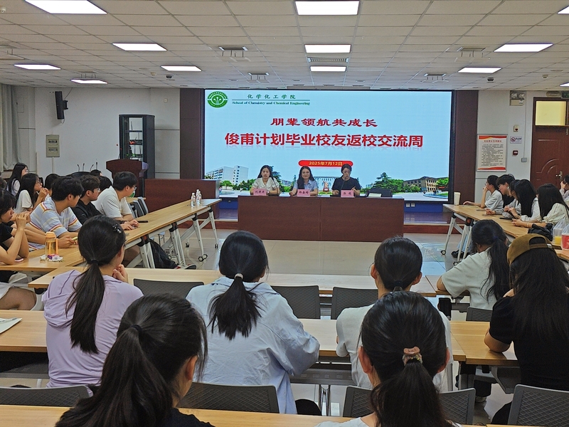 7月12日上午,化学化工学院在化学北楼五楼会议室成功举办朋辈领航——“俊甫计划”优秀校友返校交流活动。活动特邀2022届“俊甫计划”优秀毕业生刘洋洋、韩嘉琦返校,与俊甫计划在校学员共聚一堂,畅谈成长心得。