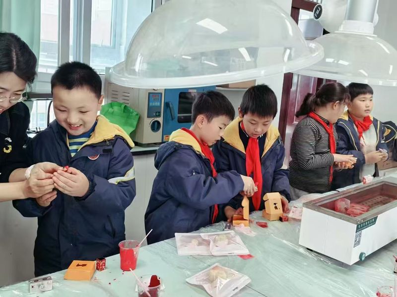 为激发青少年科学探索热情,让化学知识走进日常生活,10月22日至11月3日,我院“i科普”化羽科创志愿服务团联合化学创新社,应河师大附属小学的邀请,举办多场“唇彩自造,皂随心动”日化科普DIY活动。 活动现场,志愿者以生动有趣的讲解,为孩子们揭开了日常用品中的化学面纱。他们详细阐述了口红成分的奥秘与手工皂的制作原理,配合冷制皂的现场实验演示,使抽象的化学知识化为直观奇妙的视觉体验,引发了孩子们的阵阵惊叹。在实践环节,孩子们化身“小小科学家”,亲手制作专属口红与手工皂。口红制作时,大家在志愿者指导下完成基料加热、成分混合、灌模冷冻等步骤,最终成功脱模。手握自己制作的口红时,所有人脸上洋溢着无比的喜悦与成就感。手工皂制作环节同样精彩,孩子们精心调配香料,耐心揉捏、塑形皂基,并在模具中涂抹桂花精油以确保顺利脱模。不一会儿,一块块造型可爱、香气宜人的手工皂便陆续诞生,创意与匠心在指尖精彩碰撞。 本次活动中,“i科普”志愿团与化学创新社高效协作,将专业知识与技术优势相结合,让孩子们在“做中学、玩中悟”,体验到手工创作的快乐,在青少年心中播下科学探索的种子,共同为提升青少年科学素养、推进科普事业发展贡献力量。 (化学化工学院 路倩倩 张羽) |