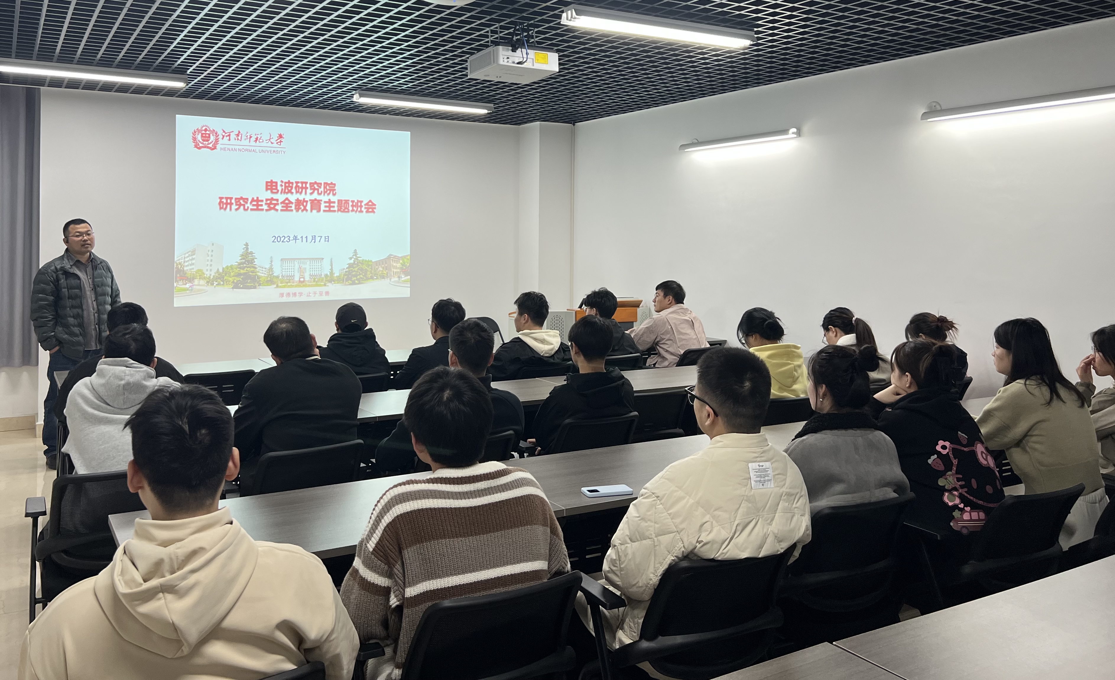 11月7日下午,电波研究院在实训楼904会议室召开全体研究生安全教育主题班会。会议由电波研究院研究生辅导员王莹主持并主讲,副院长赵志军参加了主题班会。