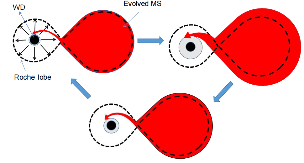 现在,人们正在利用Ia型超新星作为标准烛光来测量宇宙学的参数,从而检验暗能量物态方程随时间的演变。但是,目前Ia型超新星的前身星仍然不清楚,这可能会阻碍精确宇宙学的发展。超软X射线源被认为是最可能的Ia型超新星的前身天体。超软X射线源是由一颗白矮星和一个大质量的主序伴星组成。白矮星稳定地吸积来自伴星的物质,不断增加自身质量,直到其质量达到钱德拉塞卡质量极限,从而发生Ia型超新星爆炸。超软X射线源的光变曲线表现出明暗交替的准周期性变化。然而,超软X射线源的这种准周期性变化光变曲线的成因仍然不清楚。