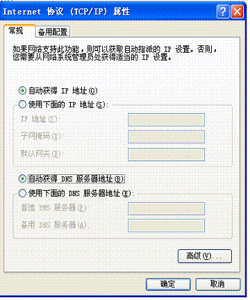 方法:开始菜单 —》 设置 —》控制面板 —》 网络连接 —》 本地连接(右键属性) —》 常规—》 Internet协议(TCP/IP),把自动获取IP地址和自动获得DNS服务器地址选中,确定即可。(以 WindowsXP 系统为例):点(左下角)开始 — 设置 — 控制面板 — 网络连接,右键单击 “ 本地连接 ” 的图标,选择 “ 属性 ” ,打开 “ 本地连接属性 ” 窗口。