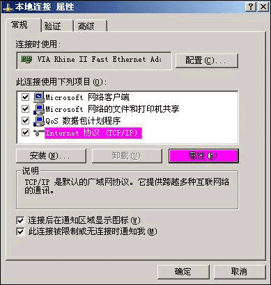在 “ 本地连接属性 ” 窗口中,选择 “Internet 协议( TCP/IP ) ” 选项,点 “ 属性 ” 按扭。