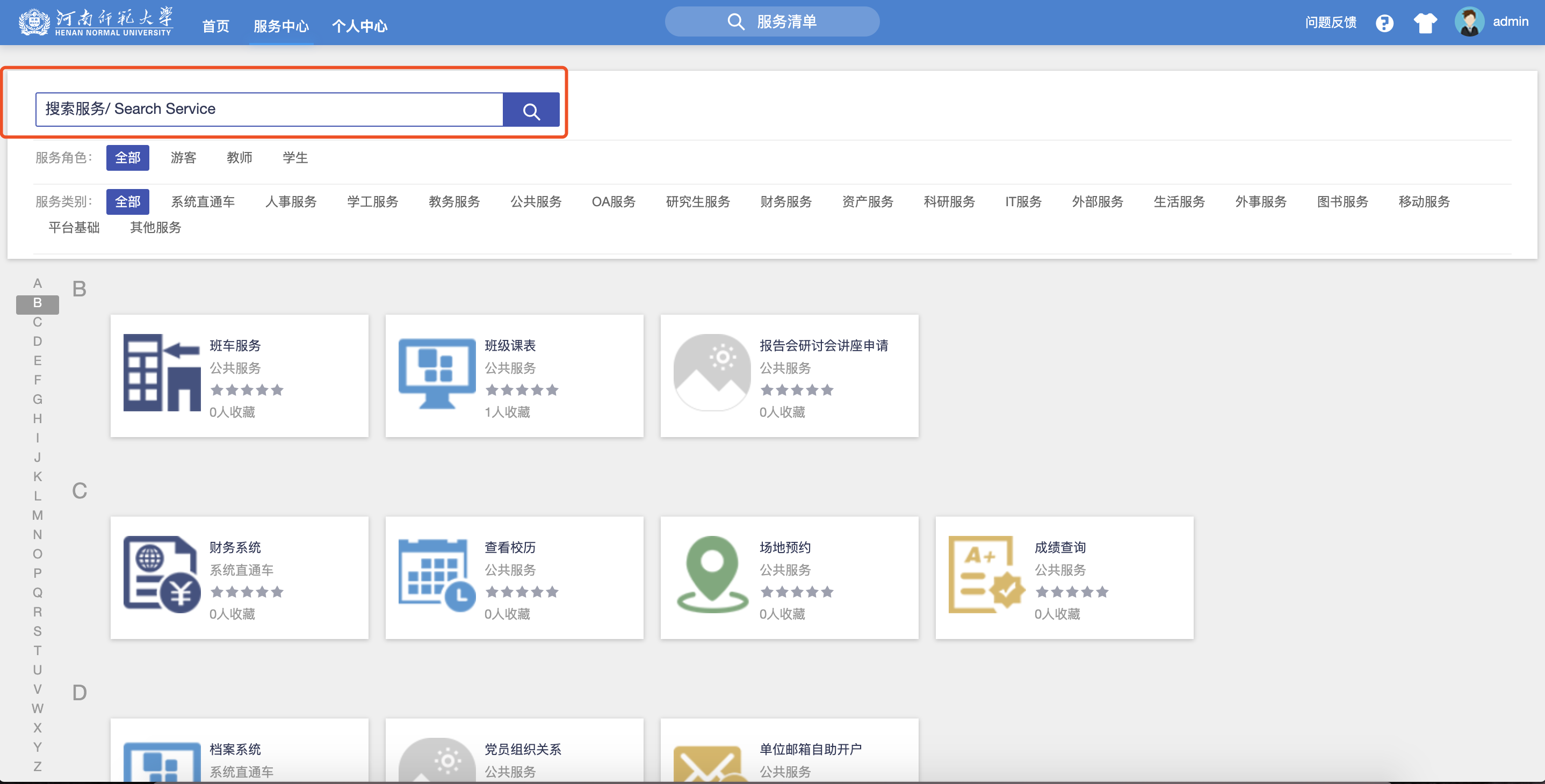 可根据服务名称搜索,也可按类别搜索具体服务。