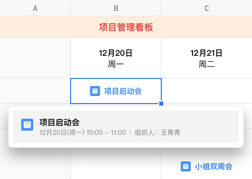 成员可以创建公共日历,统一安排团队日程,如项目计划、培训讲座等
