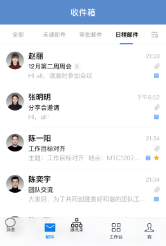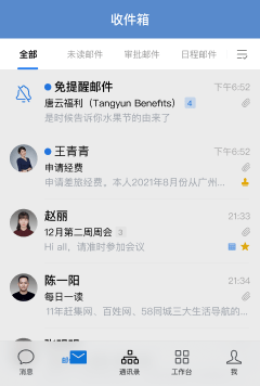 自动分类未读邮件、审批邮件、日程邮件,可以在邮件列表快速筛选,更方便地管理不同类型的邮件