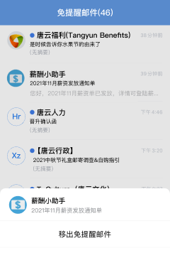 提供了更正式、更安全的工作邮件地址,可以方便地收发同事邮件;还支持对收发件人快捷发起群聊,智能分类邮件