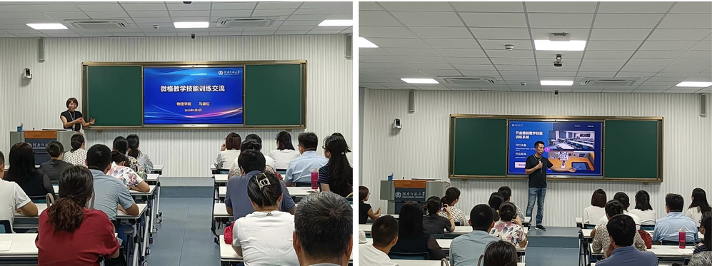物理学院马淑红老师从教学设计、教学语言、媒体运用、教学导入、教学内容讲解、归纳小结、课堂组织管理、教学评价、教学反思等教学基本技能和参训教师进行了分享、交流。随后,信息化建设与管理办公室邢勇老师围绕微格教学技能训练系统的概况、操作流程、智慧教学功能和常见问题及解决方法四个方面给大家进行了详细介绍,并对教师提出的问题进行了答疑与交流。最后,组织并指导参训教师到教室里进行了实操演练。