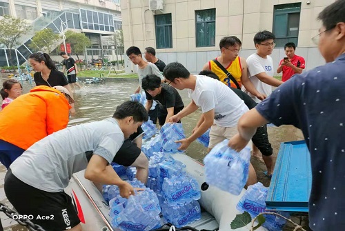 心系受灾学生,积极运送物资。学院副书记、辅导员连夜对学生情况进行精准摸排,及时掌握学生动态,牢牢守住学生生命安全底线。考虑到校园内各处都有没膝深的积水,人员出行困难,各种交通工具无法使用,学院动用皮划艇,将物资分批装到皮划艇上,直接送到各个宿舍门口,也将温暖送到了学生的心里,整个物资发放过程持续了6个小时,学生充分感受到了关爱和温暖,增强了作为师大一员的认同感和自豪感。