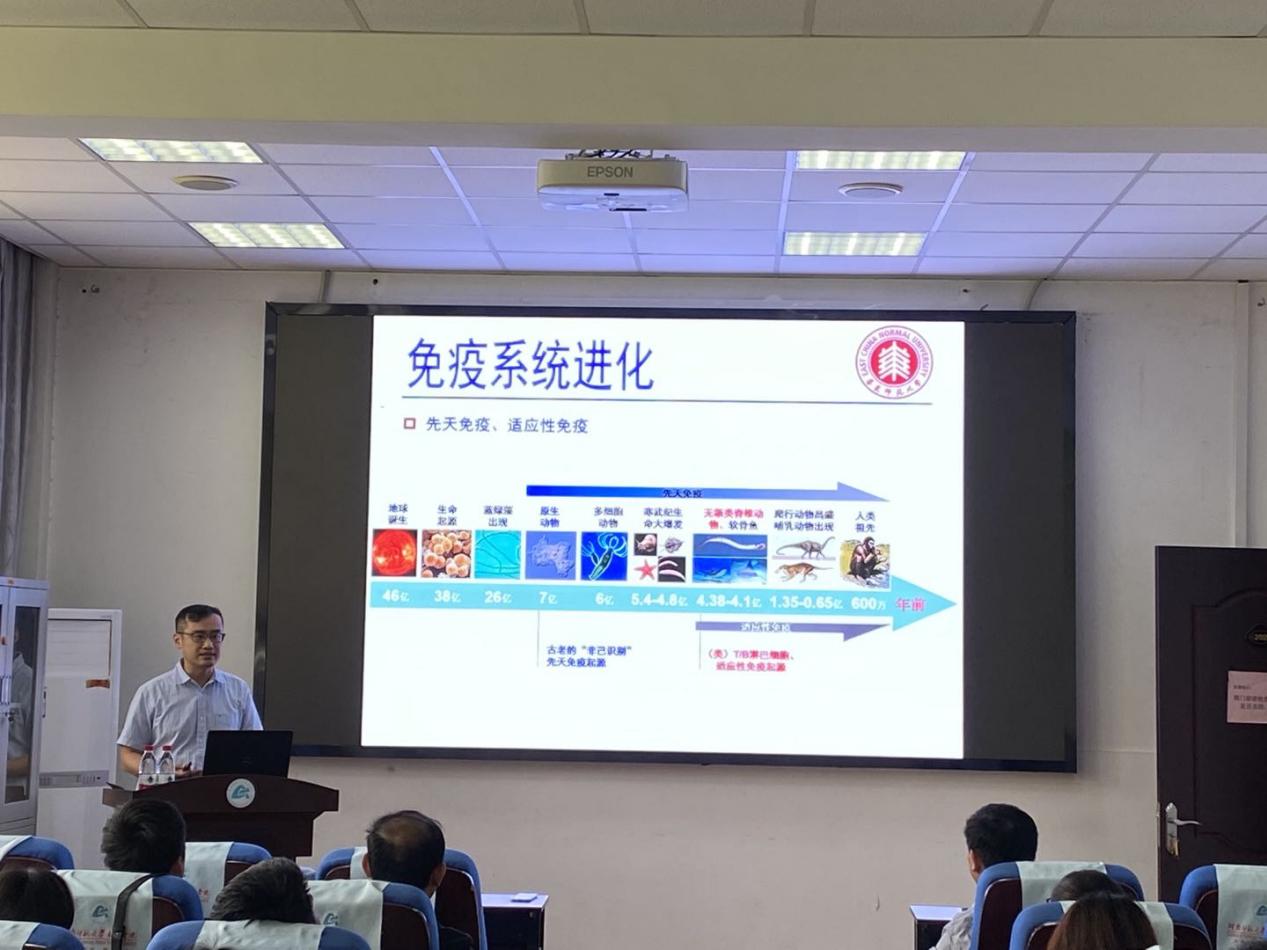 5月7日上午,应我院邀请,华东师范大学生命科学学院杨嘉龙教授在我院水产楼202会议室作了题为“解密鱼类T细胞,探寻适应性免疫演化”的学术报告。学院教师、研究生和部分本科生共计70余人聆听报告会,会议由水产学院党委书记孔祥会主持。