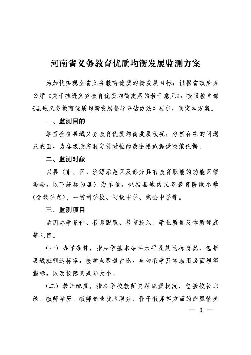 豫教督导129号《关于印发河南省义务教育优质均衡发展监测方案的通知》