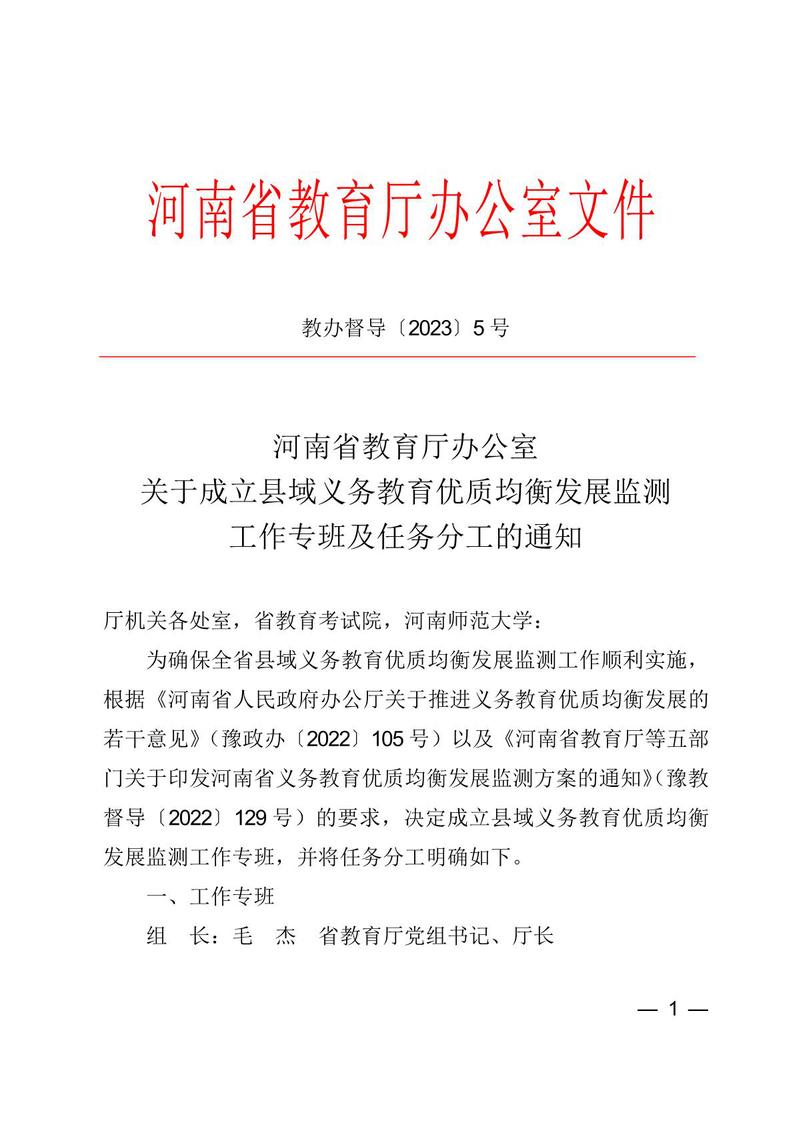 教办督导〔2023〕5 号《关于成立县域义务教育优质均衡发展监测工作专班及任务分工的通知》