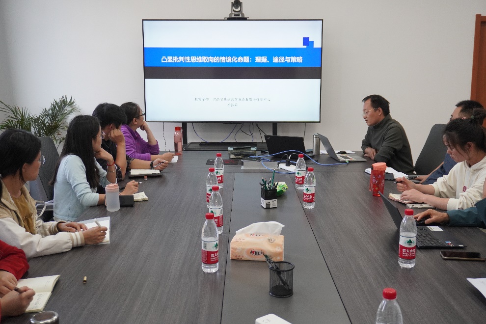 10月16日下午,河南省基础教育发展监测与评价中心在田家炳教育书院103会议室召开第九期学术沙龙,李怀军副教授和魏培文博士分别以“凸显批判性思维取向的情境化命题”和“中小学教师精准教学能力评价”为主题做研究报告,河南省基础教育发展监测与评价中心相关工作人员参加沙龙。沙龙由赵锦博士主持。