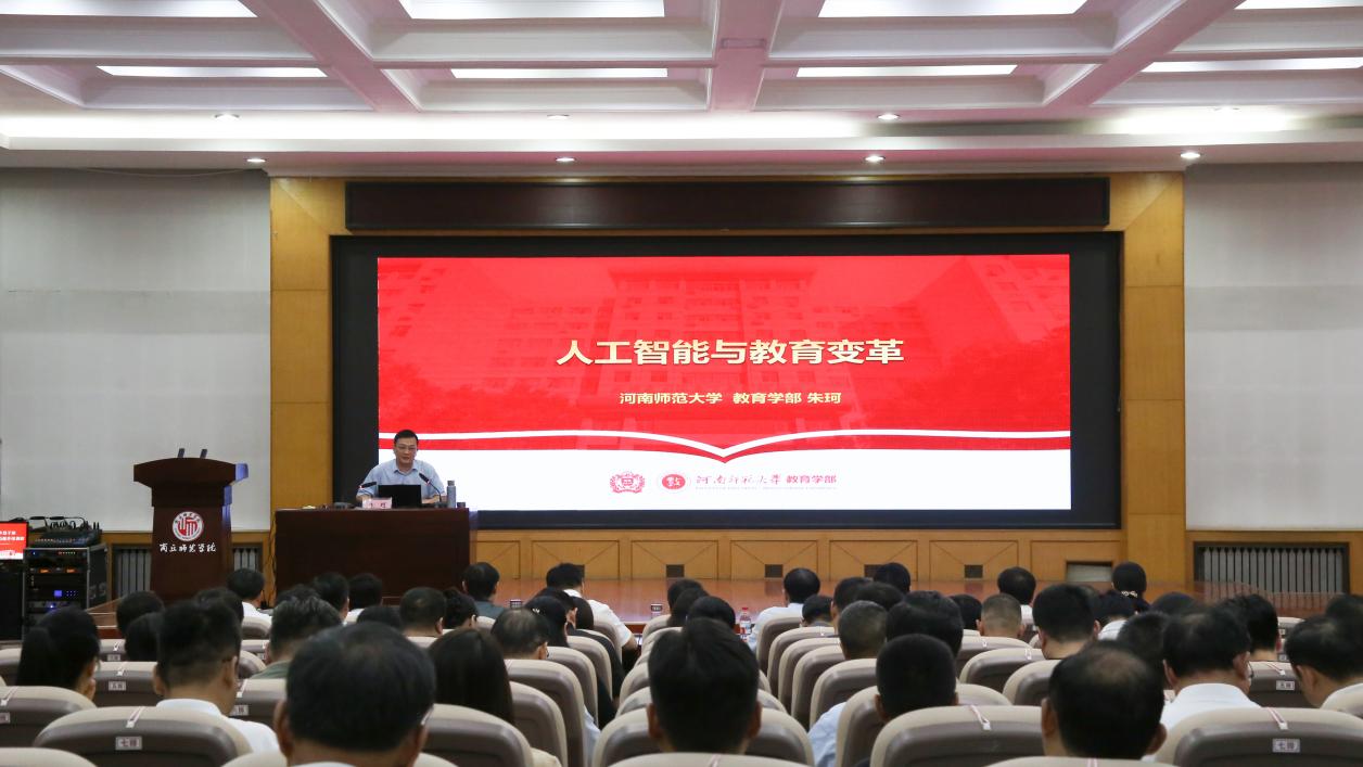 8月28日下午,朱珂教授受商丘师范学院党委组织部邀请,为全校中层干部做题为《人工智能与教育变革》的专题报告。商丘师范学院全校各职能部门、二级学院中层领导干部百余人参会学习。