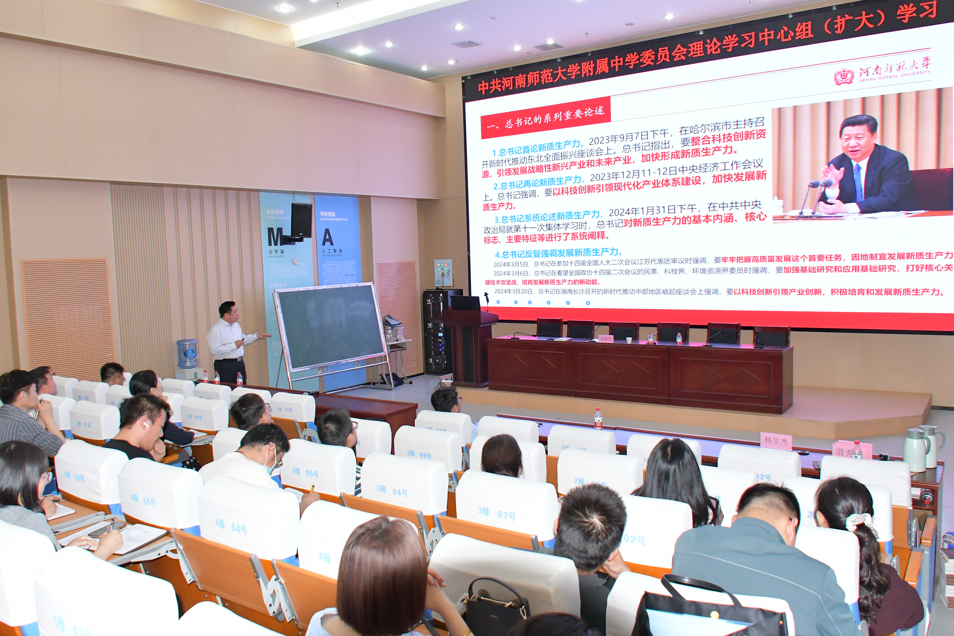 4月23日,在河南师大附中综合实验楼阶梯教室召开附中党委理论学习中心组(扩大)学习会。附中理论学习中心组成员、各部门负责人、年级主任、各党支部书记,伟德官网下载苹果版附属小学和幼儿园班子成员,伟德官网下载苹果版基础教育集团成员校代表等参加学习会。会议由附中副校长杨呈杰主持。