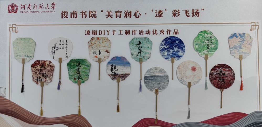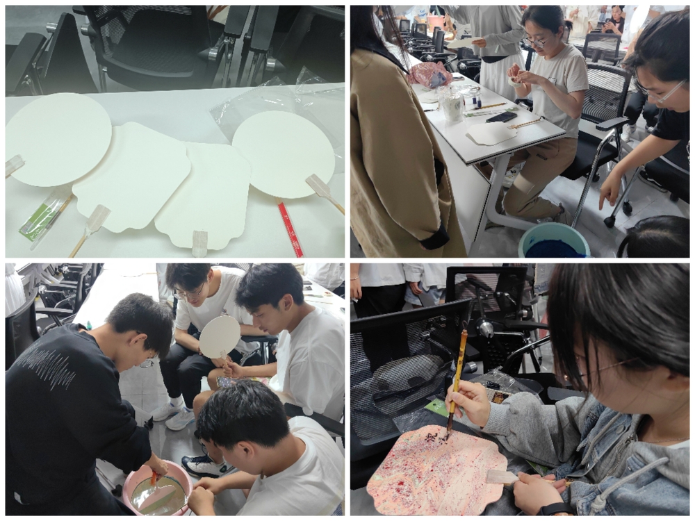 活动负责人为同学们讲解了漆艺扇子的历史文化,制作原料和独特魅力,并为同学们详细讲解了漆扇的制作过程。在老师以及负责人的协助下,同学们脑洞大开,创意无限,各自发挥特长,调漆,试色,将白扇缓缓放入漆桶,或旋转,或轻摇,等待漆干燥之后题字,每一个环节都考验着大家的耐心和技艺,每一柄美轮美奂的国风漆扇都倾注了创作者的感情,这些作品不仅体现了大家的创造力,更展现了书院学生积极向上的精神风貌和朝气蓬勃的青春风采。