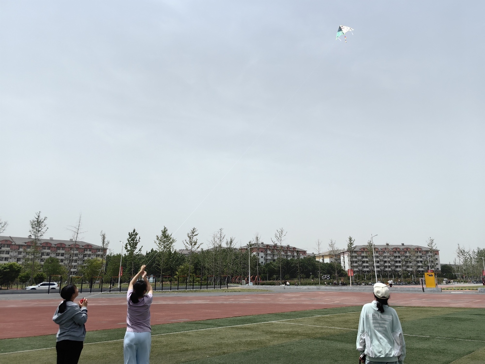 绘制完成后,同学们自由组队开启“放飞挑战”。操场上一时间欢声雷动,有人负责牵引风筝线奔跑助力,有人专注观察风向调整角度,还有同学化身“技术指导”分享放飞技巧。当十余只彩绘风筝相继升空,化作碧空中的流动画廊时,不少同学举起手机记录这治愈瞬间。“和室友配合成功放飞的那一刻,好像所有压力都随风飘散了。”2023级万彦彤同学兴奋地说道。