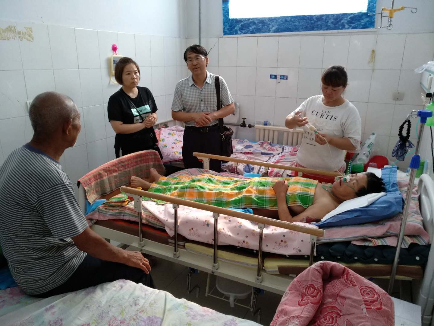 得知李俊生家属在薄壁卫生院住院,王健老师带领大家直接赶赴薄壁卫生院,慰问看望病人,带去了组织的关怀,送去了组织的温暖,并安抚李俊生一家,要相信党、相信组织,相信国家政策,一定要加强联系,安心养病,争取早日康复。