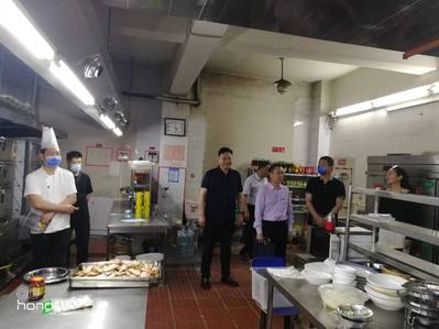 全体党员干部实地查看了学术交流中心餐饮部储藏室、操作间的卫生环境、食品进出货记录、食品原材料等设施设备。