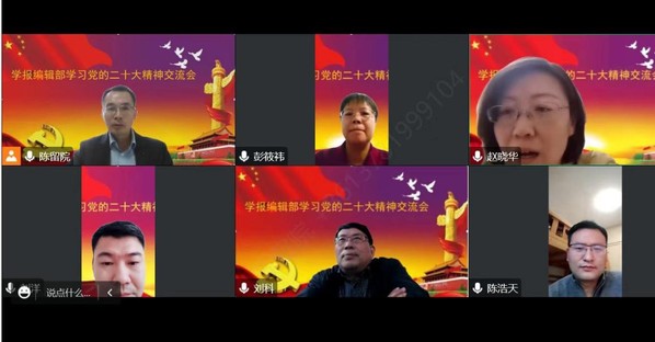 10月21日下午,学报编辑部党支部组织全体党员召开学习党的二十大精神交流会,此次交流会通过线上会议进行。学习交流会由学报编辑部党支部书记陈留院主持。