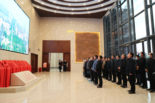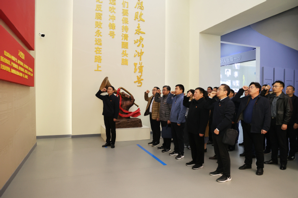 在讲解员的引导下,大家依次参观了“打造铁的纪律、全面从严治党、建设清廉新乡、涵养廉洁文化”4个展厅和“抉择之路、警钟长鸣”2个沉浸空间。教育馆内一组组翔实的史料、一句句箴言警句、一幅幅真实的照片、一个个发人深省的案例,都让大家深感震撼、深受教育。在“入党誓词”展厅前,校党委常委、党委统战部部长、机关党委书记李志前同志带领党员干部在党旗下宣誓,重温入党誓词,用庄严承诺警醒自身言行,践行初心使命。