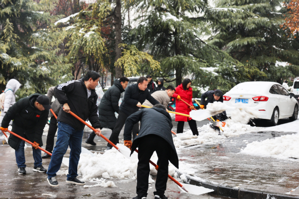 为保障师生安全出行,充分发挥党员的先锋模范作用,12月14日,机关党委组织开展校园扫雪志愿活动,校党委书记王宗敏,党委副书记张尚字,党委副书记、工会主席马治军,机关党员干部60余人参加此次活动。