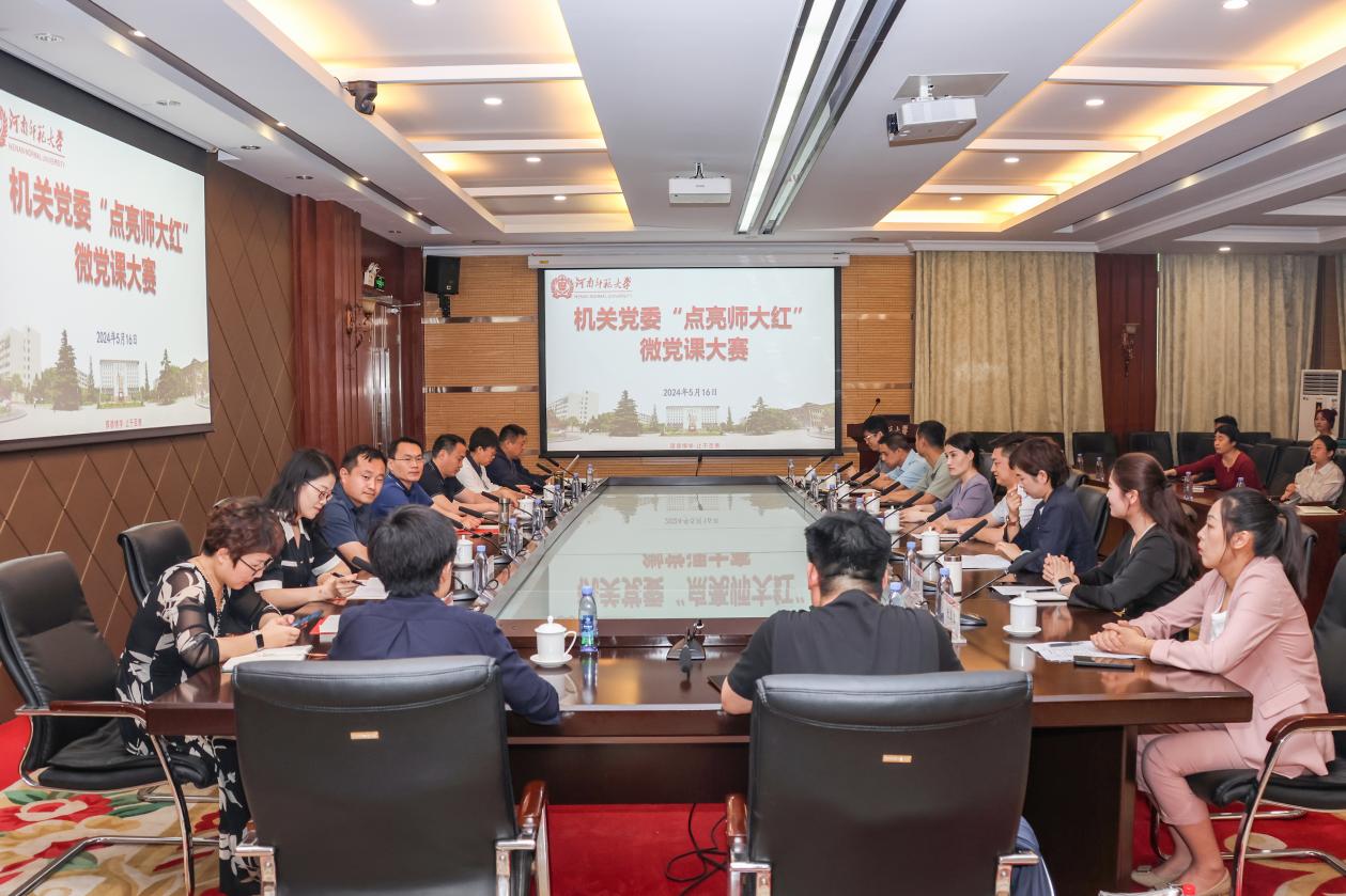 5月16日下午,机关党委“点亮师大红”微党课大赛在勤政楼第三会议室举行。机关各党支部党员代表40余人参加本次活动。邀请党委组织部、机关党委和相关学院教师担任评委,活动由党委统战部副部长、机关党委副书记朱守宏主持。