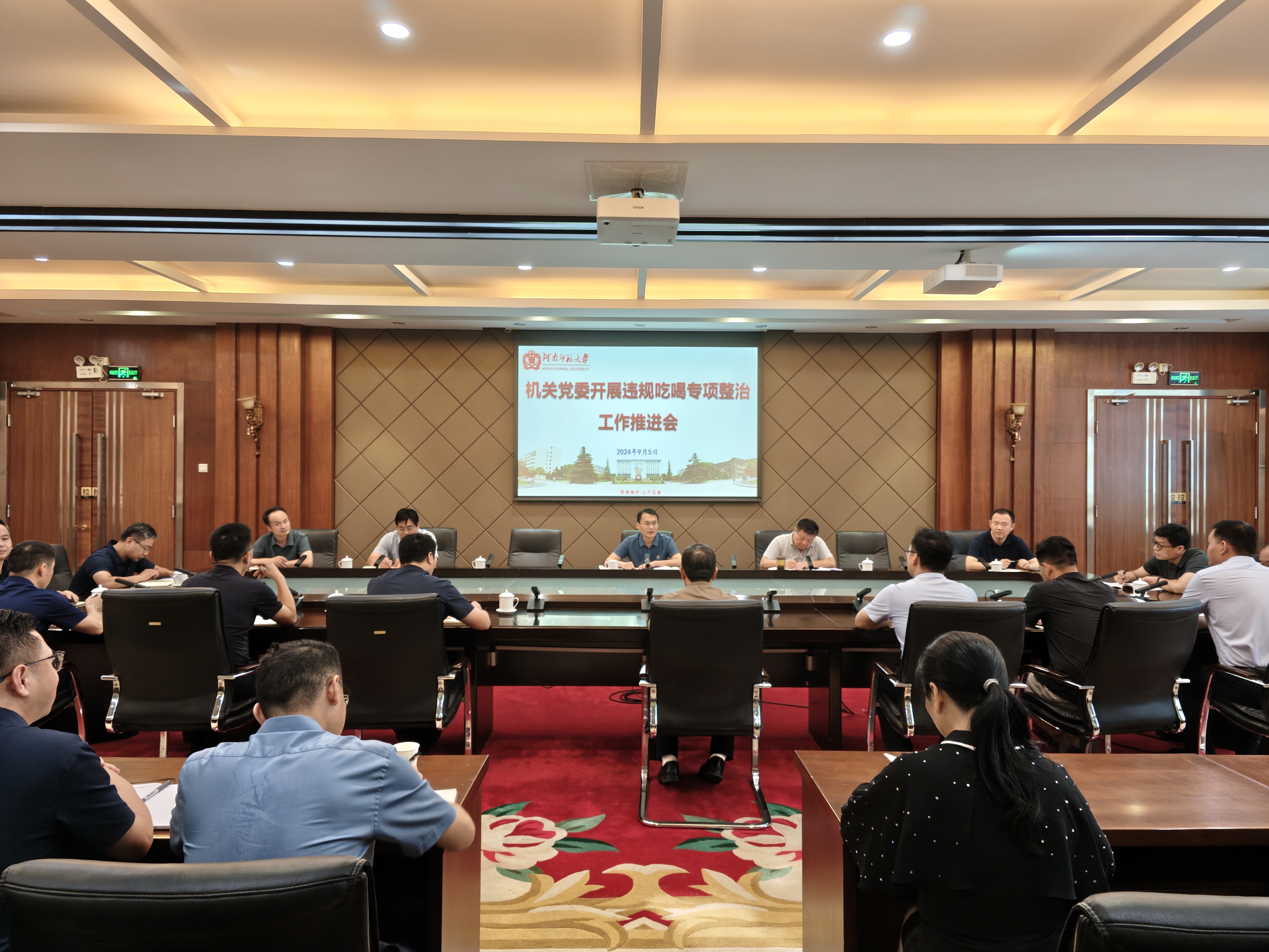 9月5日下午,机关党委于勤政楼第三会议室召开违规吃喝专项整治工作推进会,对违规吃喝专项整治工作进行再加压、再部署。机关各党支部书记参会,会议由校党委常委、党委统战部部长、机关党委书记李志前主持。