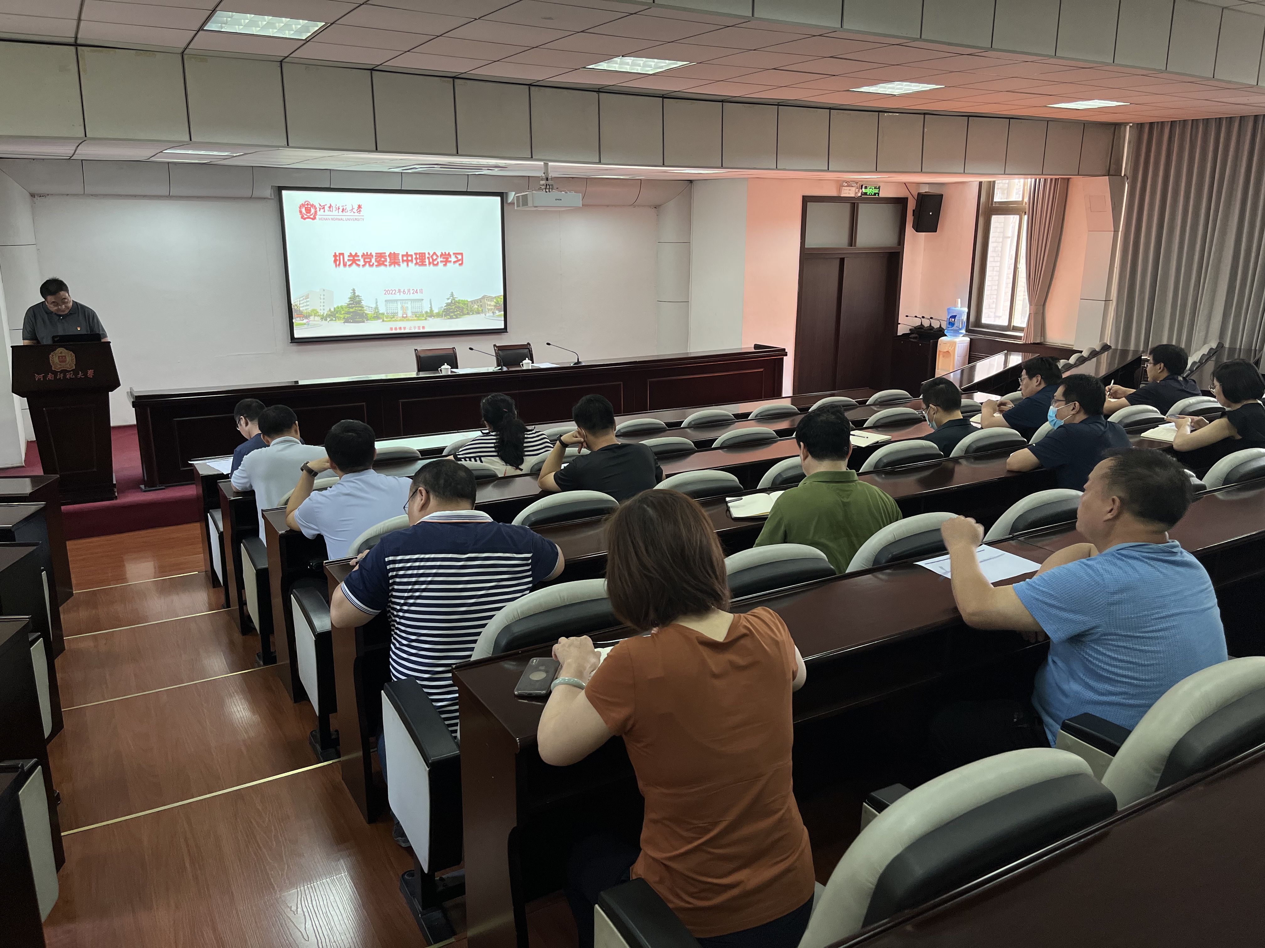 6月24日下午,机关党委在勤政楼第四会议室召开集中理论学习会,机关党委委员、党支部委员、党员代表参加会议,会议由机关党委副书记兼纪委书记高飞主持。
