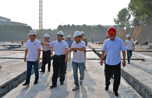 7月9日上午,校长常俊标、副校长李雪山一行到东校区DEFG教学楼施工现场,视察工程建设情况,详细了解施工进度,认真听取了基建处和建设单位的工作汇报。