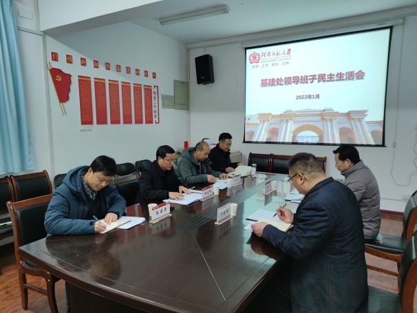 1月6日上午,基建处召开了2021年度领导班子民主生活会。校纪委委员、校纪委副书记、校党委巡察办主任李清富,机关党委书记马新峰到会指导。基建处党支部书记、处长杨宝刚主持会议。