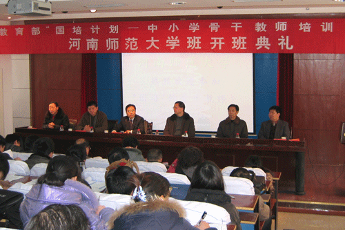 经过认真的组织和准备,1月5日上午9时30分,教育部“国培计划——中小学骨干教师培训项目”(以下简称国培计划)伟德官网下载苹果版班开班典礼仪式在物理与信息工程学院学术报告厅举行。省教育厅师范教育处处长尹洪斌、副处长杨永盛、科长胡全胜,我校副校长黑建敏,“国培计划”项目执行办主任、政治与管理科学学院副院长赵海山,相关教学学院的领导和各学科组教师及班主任出席了开班典礼。大会由“国培计划”行政保障办主任、继续教育学院副院长石磊主持。接受首期培训的政治和数学两个学科共计200名学员参加了开班典礼仪式。
