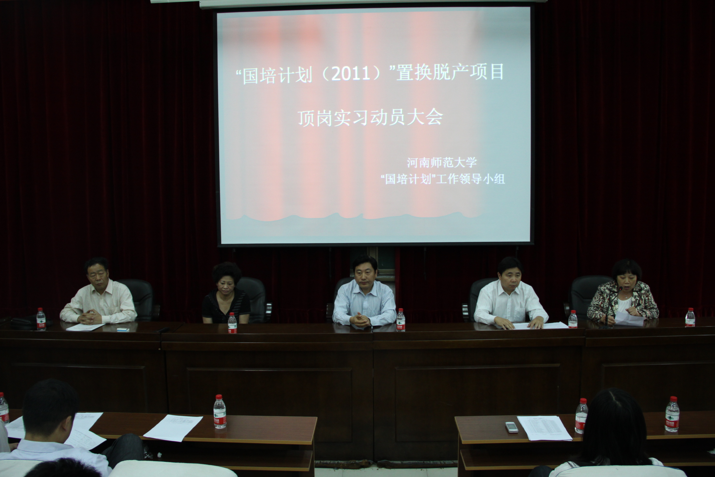根据河南省教育厅《关于进一步做好“国培计划”—河南省农村中小学教师置换脱产研修项目顶岗实习生管理工作的通知》,为使我校顶岗实习学生顺利进入教师角色,适应新的生活和工作环境,学校“国培计划”领导小组于9月25日下午在数学与信息科学学院一楼报告厅召开了顶岗实习动员会,对参加顶岗实习的184名同学进行动员和培训。新乡市第十中学马玉芬校长、教务处陈广文处长、继续教育学院石磊副院长以及各学院的培训负责人参加了会议,会议由继续教育学院武军会院长主持。