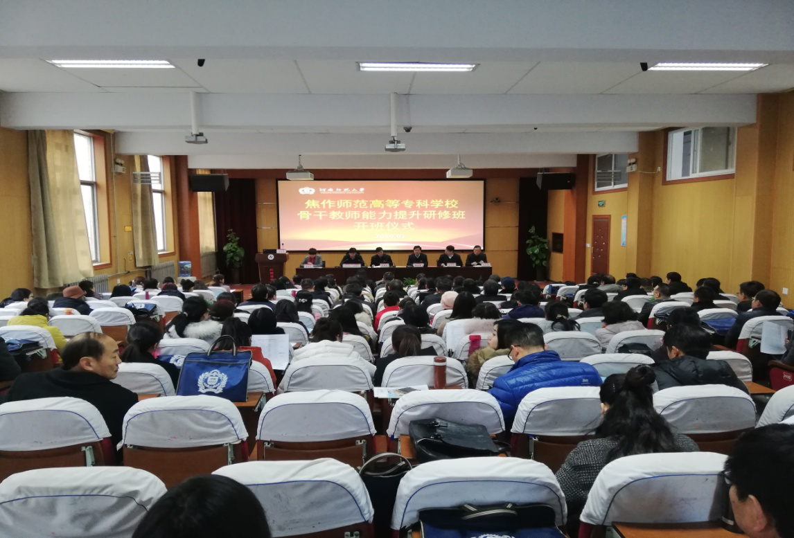 1月16日上午,焦作师范高等专科学校骨干教师能力提升研修班在我校外国语学院学术报告厅举行开班仪式。焦作师范高等专科学校党委书记刘新顺,副书记、副校长孟钟剑,副校长高闰青、靳贤胜,我校党委副书记、工会主席臧振春,校党委常委、副校长李学志出席会议。继续教育学院班子成员、项目管理人员、培训教师代表和参加培训的焦作师范高等专科学校120名骨干教师参加开班仪式。仪式由李学志主持。
