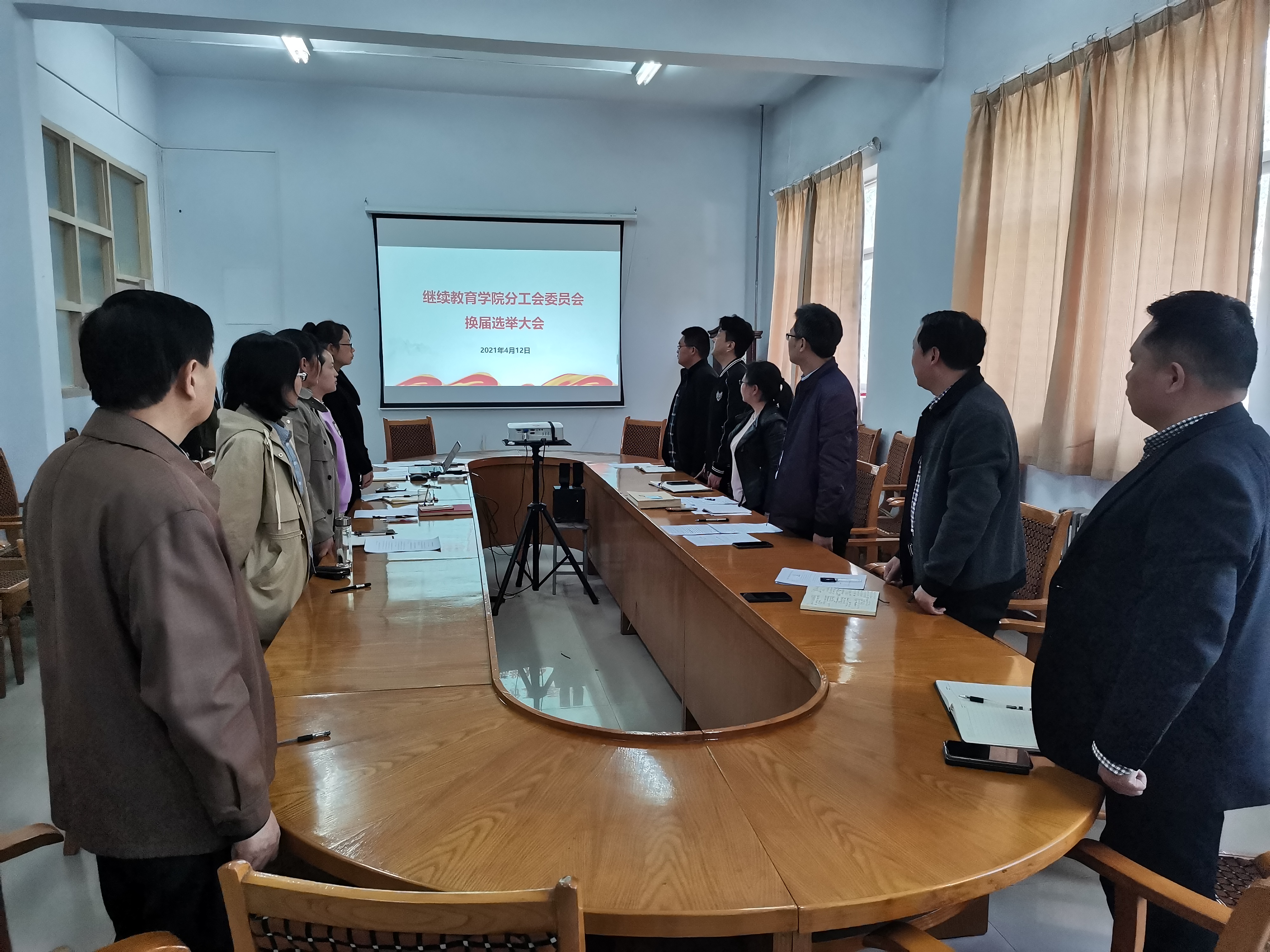 按照校工会工作安排,学院分工会于2021年4月12日下午,在二楼会议室隆重召开换届大会,大会由学院分工会副主席王小梅同志主持。