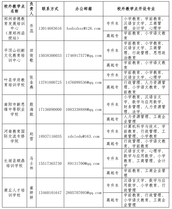 3.学校在豫备案开展高等学历教育的校外教学点为教育厅批准正式备案,年检合格的教学点。