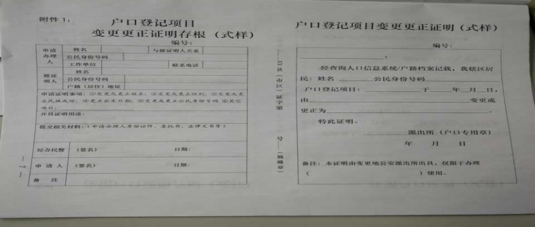 6.户口登记项目变更更正证明(或注销户口证明,证明格式按照模板要求开具)(式样见附件2,下同)