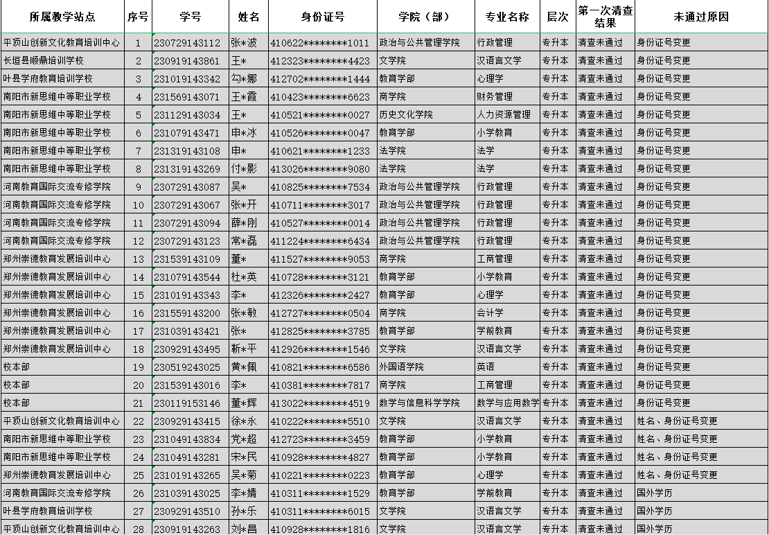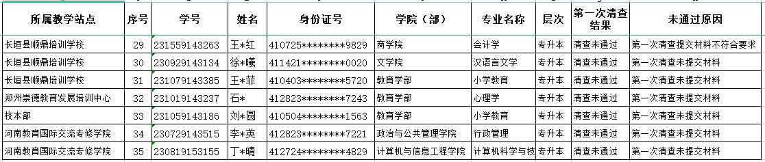 为确保我校高等学历继续教育2023级新生顺利完成学信网正常学籍注册,现2023级新生前置学历对第一次清查未通过的学生进行第二次清查(清查名单见附件1。具体通知要求如下: