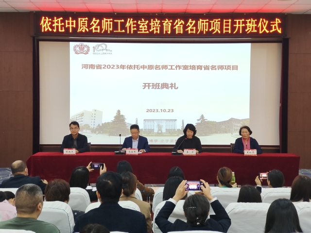 10月23日上午,由河南省教育厅主办,我校承办的2023年度依托中原名师工作室培育省名师项目在我校物理北楼报告厅举行开班仪式。我校党委副书记、工会主席马治军及培训相关负责人出席开班仪式。仪式由继续教育学院院长李津主持。
