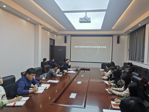 会议第二阶段,学院党总支书记张喜平为与会教师讲授专题党课。党课以“新时代继续教育数字化转型的基本思路”为主题,从教育数字化转型是教育信息化的高级发展阶段、新时代我国高校继续教育数字化转型的内涵分析、新时代继续教育数字化转型的基本思路三个方面,结合当前学院教学模式改革、教育平台建设等实际情况展开近两个小时的详细讲解。