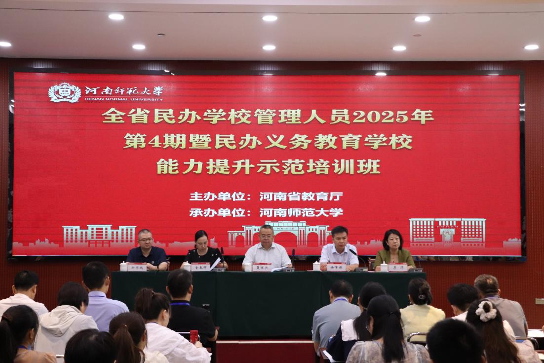8月5日上午,由我校承办的全省民办学校管理人员2025年第4期暨民办义务教育学校能力提升示范培训班在辉县党校举行开班仪式。河南省教育厅政策法规处(民办教育处)处长徐军保、一级主任科员金春晖,我校党委常委、副校长聂国兴等领导出席仪式,来自全省的80名民办义务教育学校举办人和校长参加开班仪式。仪式由我校继续教育学院院长李津主持。