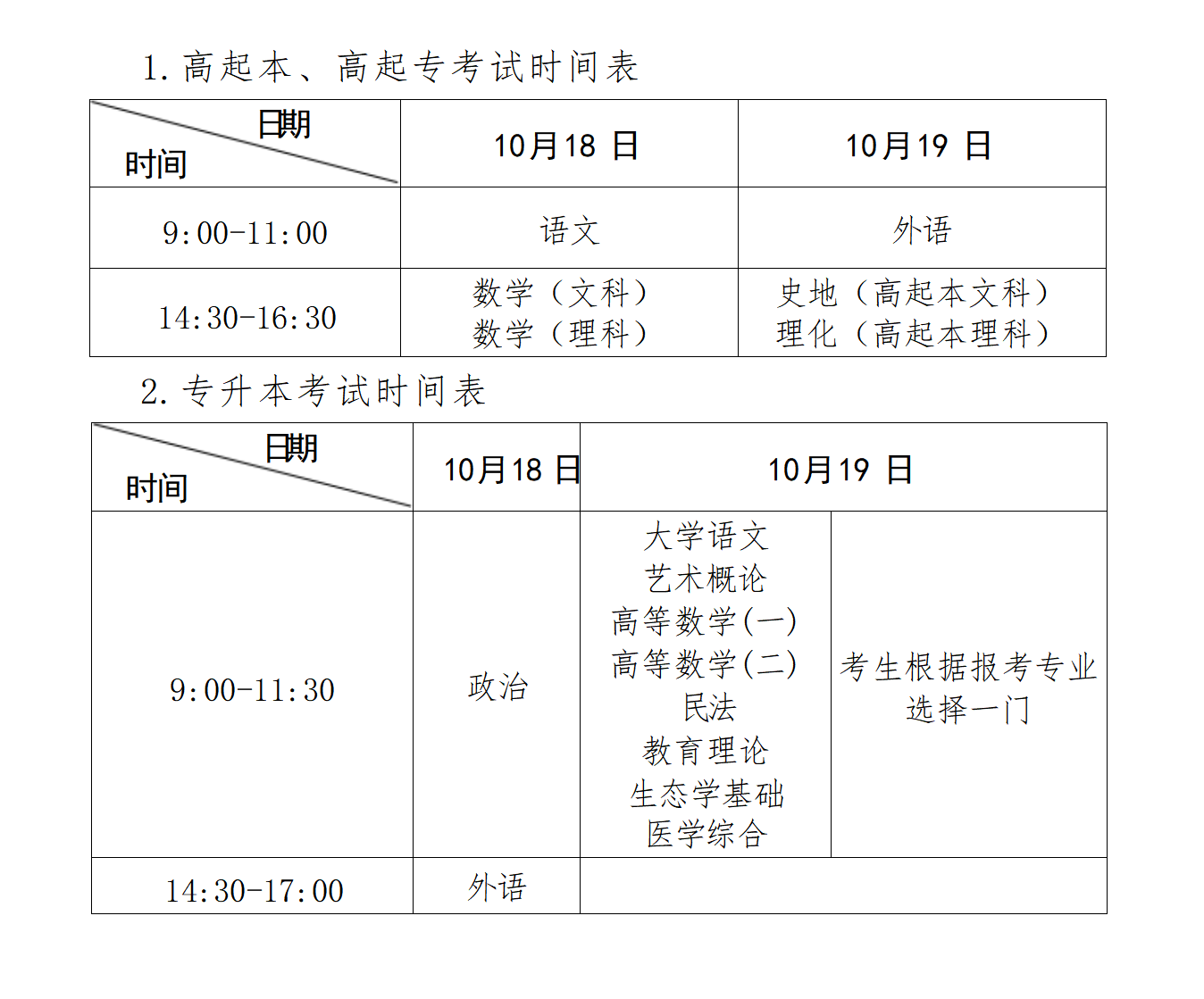 2.高起专考试科目