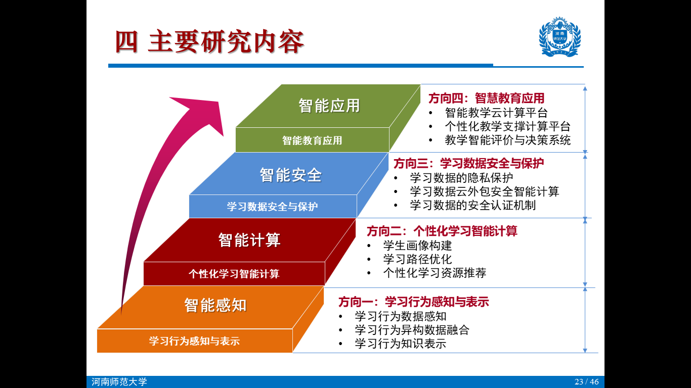 本研究方向主要解决学习行为感知与表示。主要研究学习行为数据感知、学习行为异构数据融合、学习行为知识表示。