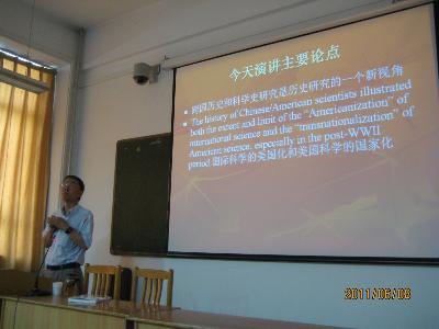 68上午,美国加州州立理工大学王作跃教授在政治与管理科学学院二楼学术报告厅做了题为《留美华人科学家与跨国科学史研究》的报告,学院有关领导、相关专业的教师、研究生以及正在我院接受培训的新密市教师近100人聆听了报告。