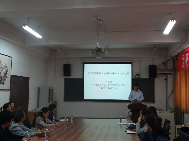 20181015日上午9点,应伟德官网下载苹果版政治与公共管理学院和我基地共同邀请,华南师范大学肖显静教授做了题为《基于基因整体论的基因编辑技术应用边界》的专题报告。报告会由基地负责人刘科教授主持,基地成员安道玉教授、谢彩霞教授、王海琴博士、张保伟博士、陈四海博士、田甲乐博士等以及部分研究生、本科生代表参加了报告会。