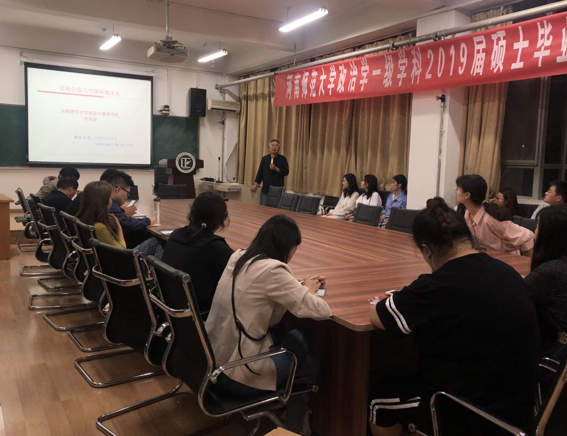 2020年9月24日晚,我院冷天吉副教授为2019级、2020级研究生做了题为《文化自信与中国文化传统》的专题讲座。与会的还有刘科、张保伟、李广宇等老师,此次讲座是全校社会科学普及周的一项重要内容。