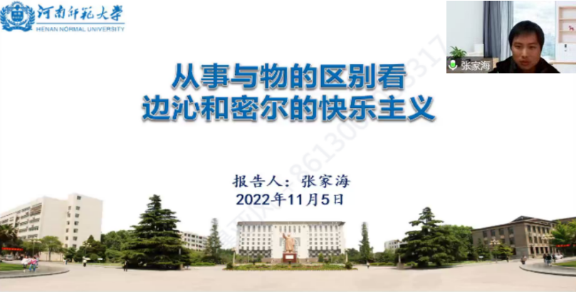 11月5日下午,哲学重点学科第二十一期哲学沙龙在线上举行。本期沙龙邀请学科成员张家海博士进行题为《从事与物的区别看边沁与密尔的快乐主义》的学术报告,学院相关专业教师、研究生、本科生等50余人参与。田甲乐博士担任主持人。