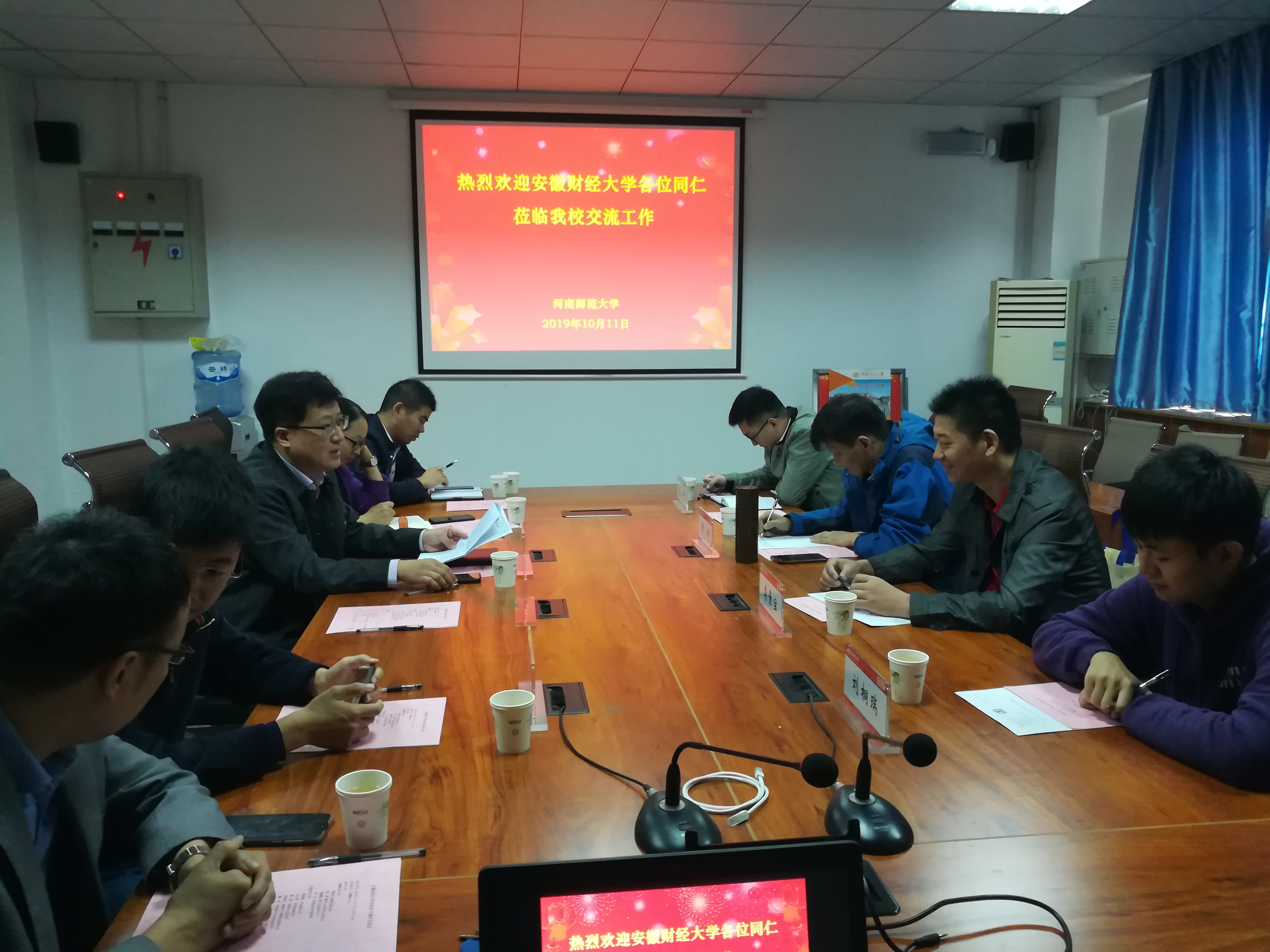 田小勇对安徽财经大学一行表示欢迎,介绍了学校历史沿革、师资力量、人才培养、科技创新、社会服务等情况以及科研管理系统运用与发挥的独特作用。他表示,河南、安徽区位上紧密相连,师大、财大同属省属重点大学,发展目标一致,希望双方以此为契机,开展更大范围、更深层次的交流合作。