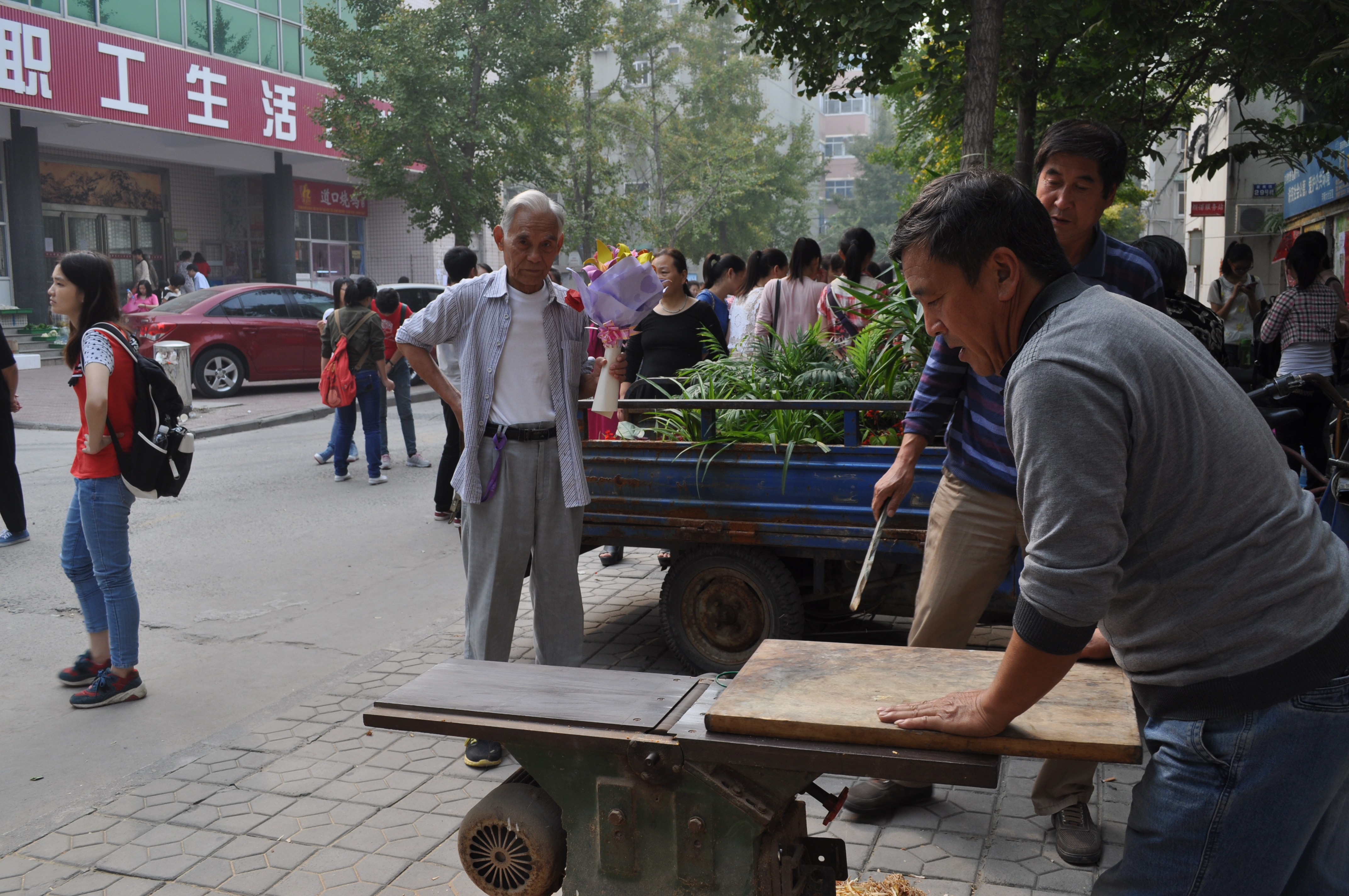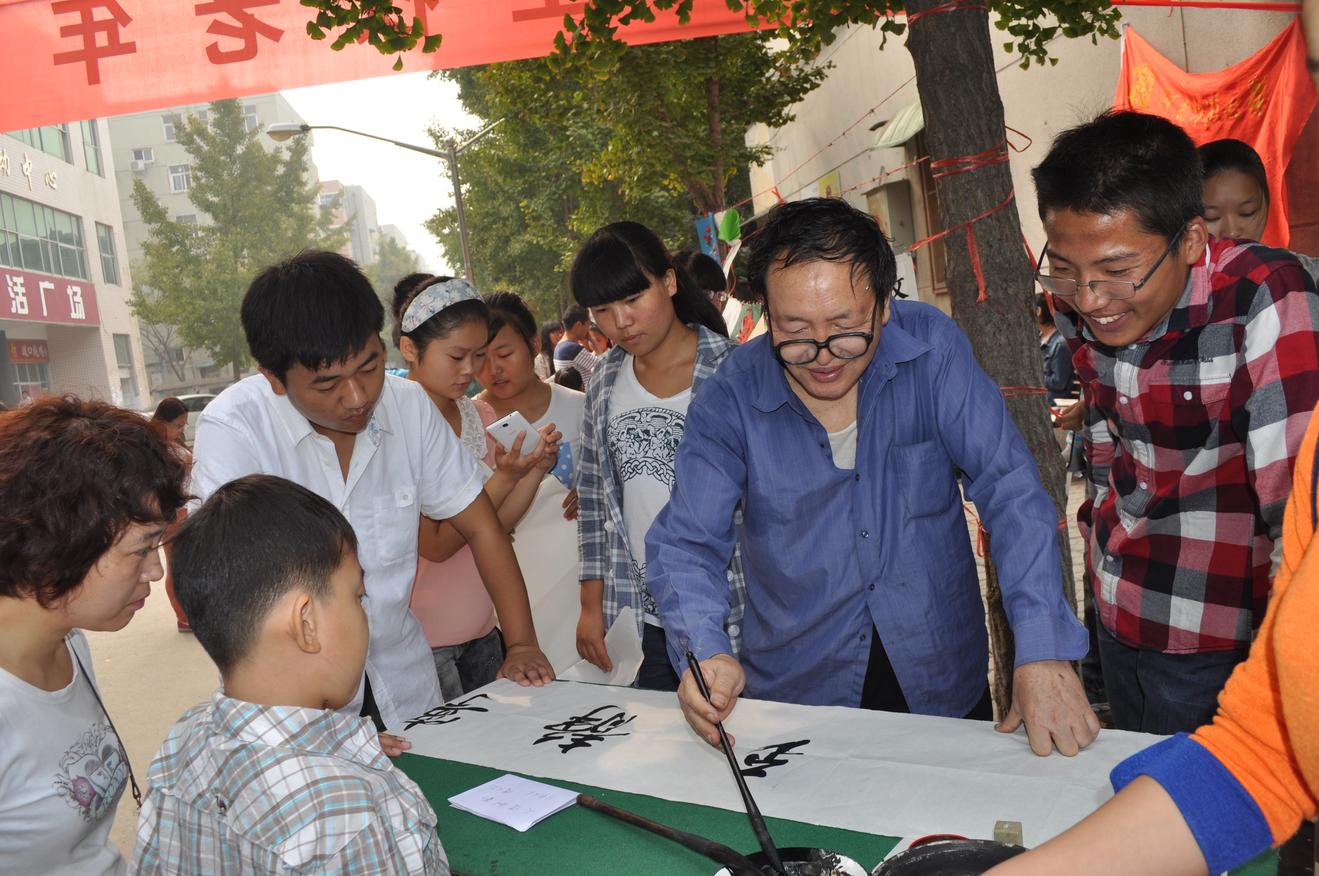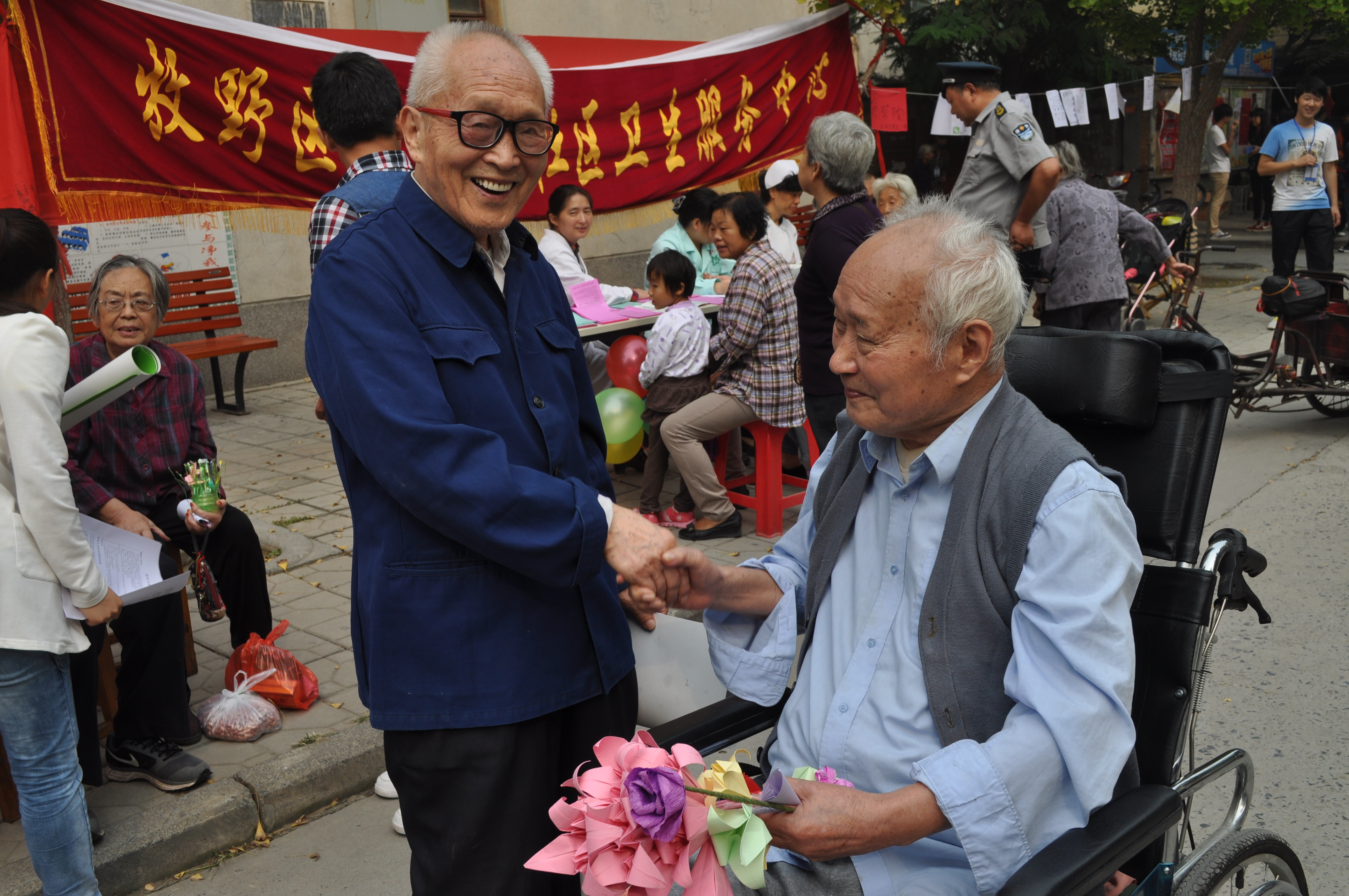 9月27上午8点,家属院主干道两侧,后勤集团、校医院以及各院系志愿服务部的同学们结合自身专业优势,以各种形式为老人们送上祝福。校医院由医生坐诊,免费为老人量血压,并提供医疗咨询;后勤集团义务通过开展刨案板、销售平价商品等活动;有些老人尽情为同学们书写书法;学生会组织的演出,和老人互动,深受欢迎;生命科学学院学生为老同志献花、宣传秋季健康小常识;数学与信息科学学院学生的千纸鹤、整齐的动感舞蹈等表达了对老人的深深祝福;美术学院为老人们义务画像、化学化工学院带来了各种手工艺品、经济与管理学院、外国语学院、物理与信息工程学院、政治与管理科学学院、文学院等都展示出了各自不同的服务项目,为老人们志呈献爱心表达慰问,送去一份关心与问候。